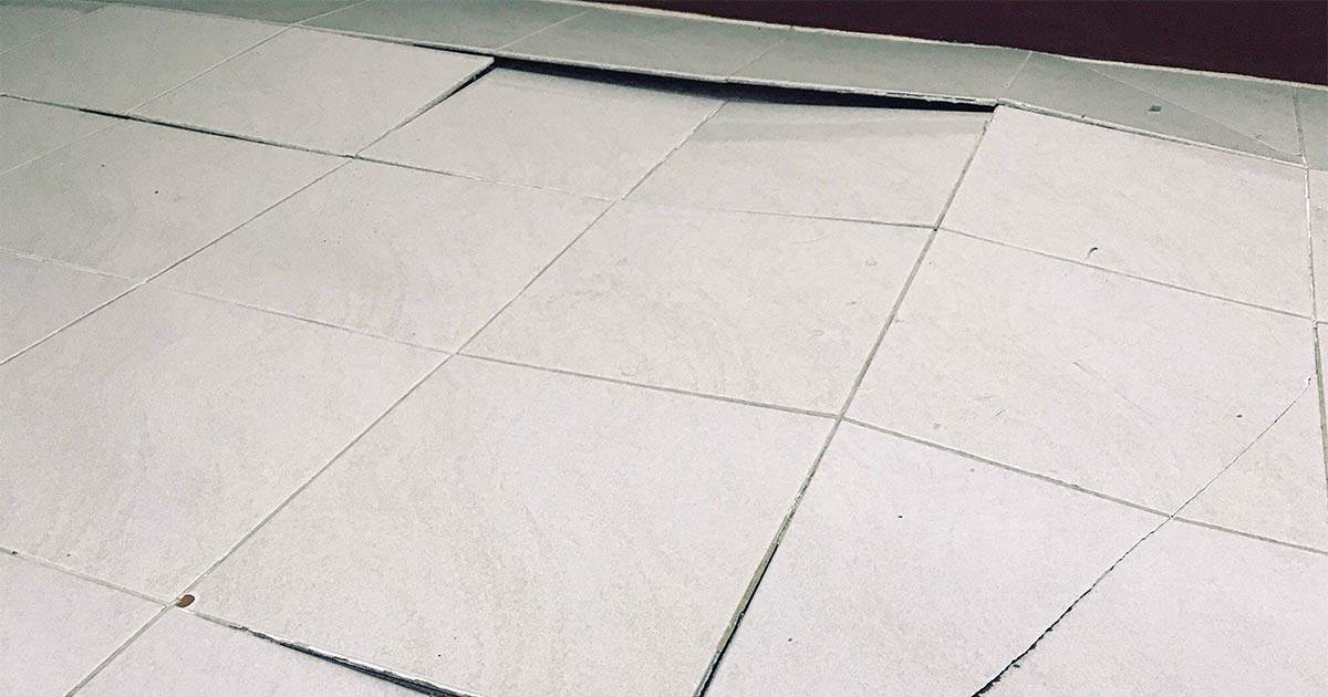 กระเบื้องที่มีอายุการใช้งานที่ยาวนาน จะส่งผลให้ปูนกาวที่เชื่อมระหว่างกระเบื้องเกิดการเสื่อมสภาพ และยิ่งหากบริเวณตัวบ้านเกิดการทรุดตัวเอียง จะยิ่งส่งผลให้เกิดแรงบีบอัดระหว่างกระเบื้อง จนทำให้กระเบื้องกระเดิด กระเบื้องโก่งตัว ได้เช่นกัน