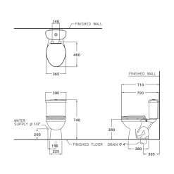 - ท่อน้ำทิ้งแบบลงพื้น (S-Trap) ห่างจากผนังระยะ 305 มม.