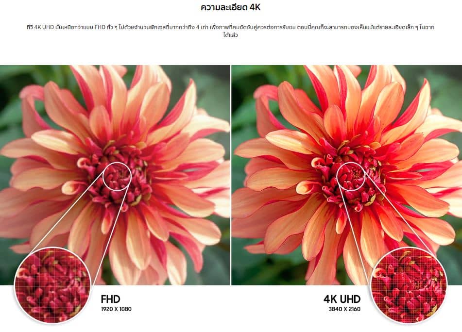 - ภาพคมชัดระดับ 4K ความละเอียด 3,840 x 2,160 พิกเซล