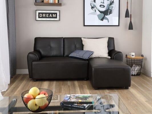 - โซฟาห้องนั่งเล่น รูปทรงตัว L เข้ามุมซ้าย ช่วยประหยัดพื้นที่ใช้สอย