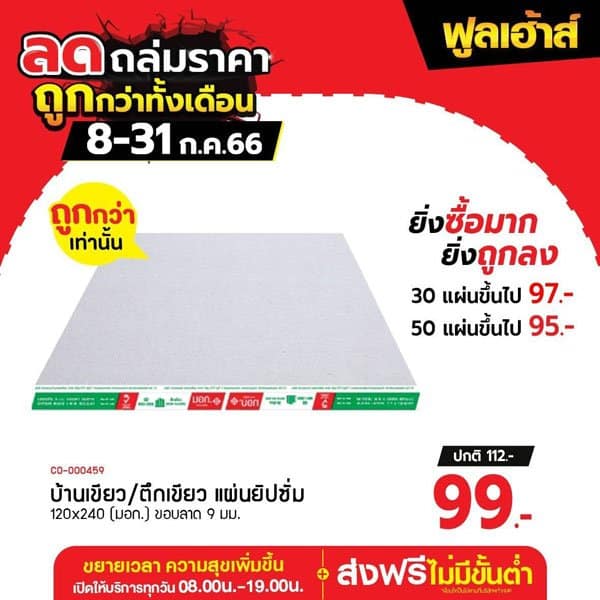 เฌอร่า แผ่นฝ้า เฌอร่าบอร์ด(ผิวเรียบ) 60cm.x240cm. หนา 3.2มิล